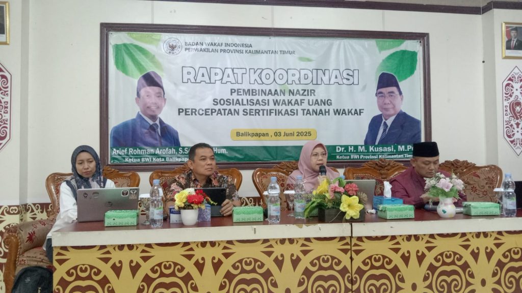 Badan Wakaf Kota Balikpapan setelah dilantik segera bergerak cepat dengan mengadakan kegiatan Rapat Koordinasi dengan perwakilan BWI Provinsi Kalimantan Timur pada tanggal 3 Juni 2025 yang bertempat di Aula Kementerian Agama Kota Balikpapan. Rapat koordinasi ini dihadiri oleh perwakilan dari BWI Provinsi Kalimantan Timur, pewakilan Badan Pertanahan Nasional (BPN), Kementerian Agama, organisasi masyarakat dan 40 perwakilan Nazir di seluruh Kota Balikpapan.